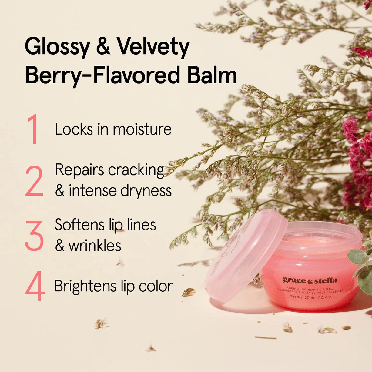 USE AS A LIP MASK OVERNIGHT OR DAYTIME GLOSS - Can be applied as a nourishing lip sleeping mask for overnight hydration and lip repair or as lip gloss for a shiny and berry-flavored pink finish to the lips!